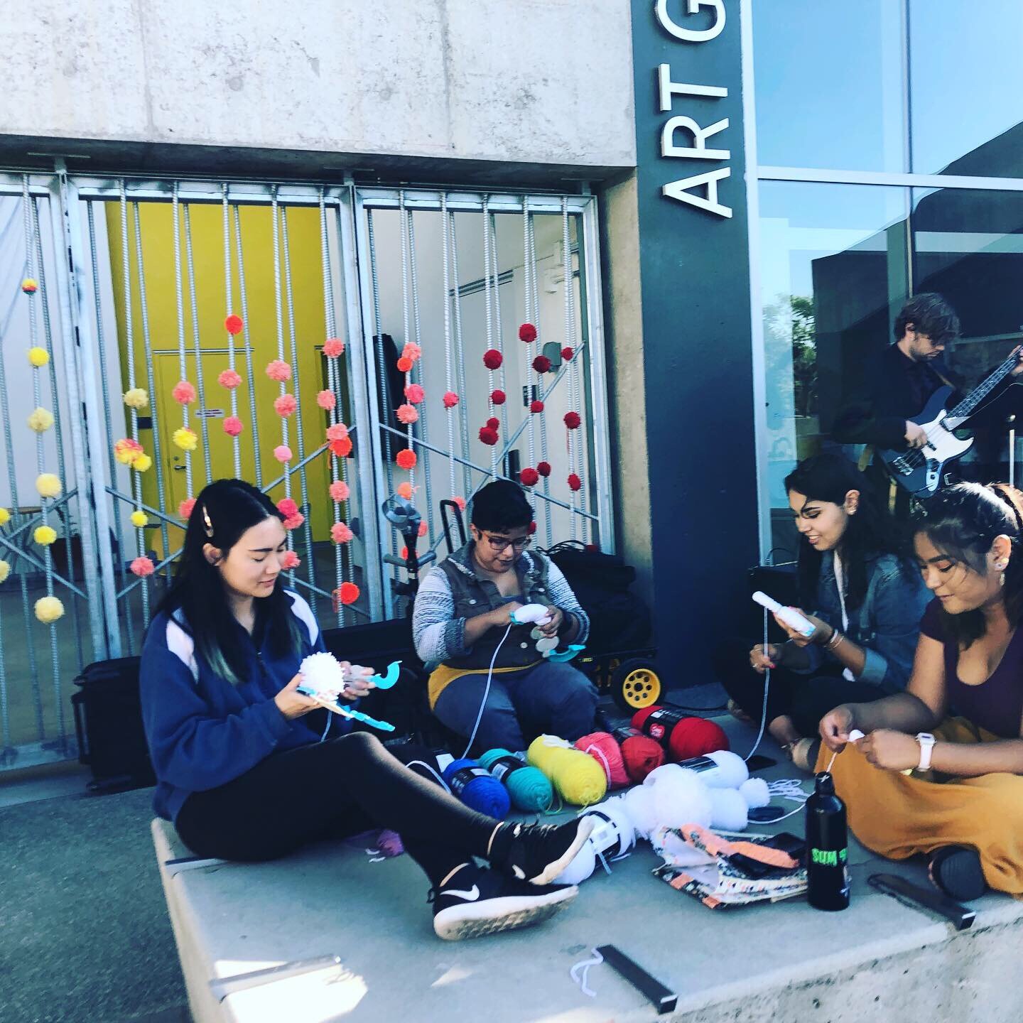 The community went to work over the pandemic. We delivered Pompom making packages to people’s doors and they returned bags full of colorful pom poms. My sister and I strung the poms onto a giant 25 foot loom. The Pride Flag hangs at the Oceanside Museum of Art during Pride Month.